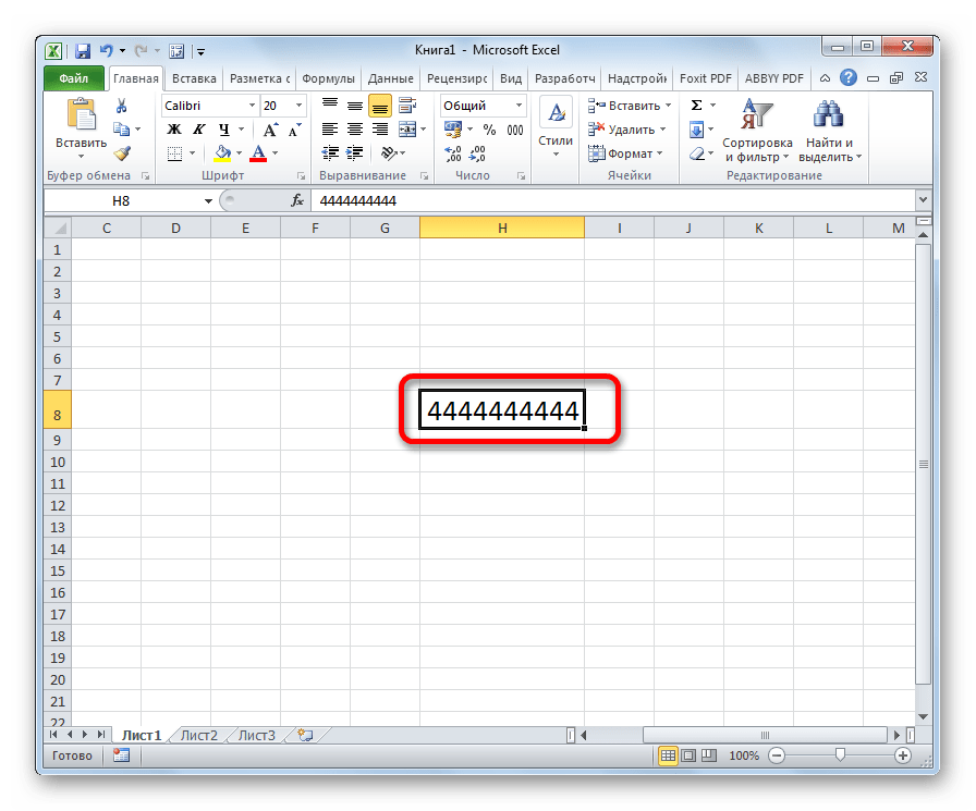 В самом начале шел разговор о том, что в старых версиях Excel установлено ограничение на количество символов в одной ячейке при установке текстового формата. Так как довольно большое количество пользователей продолжают эксплуатировать это программное обеспечение, остановимся и на решении указанной проблемы. Чтобы обойти данное ограничение придется сменить формат с текстового на общий.