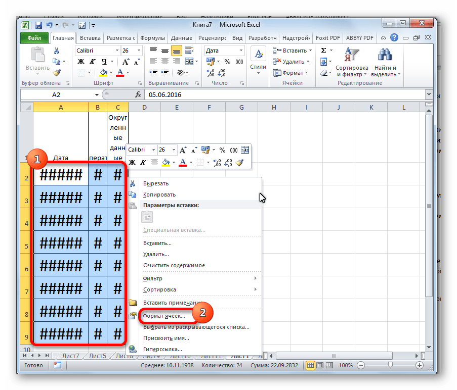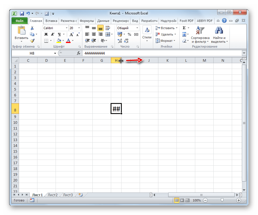 После совершения данной процедуры ячейка увеличится, и вместо решеток отобразятся цифры.