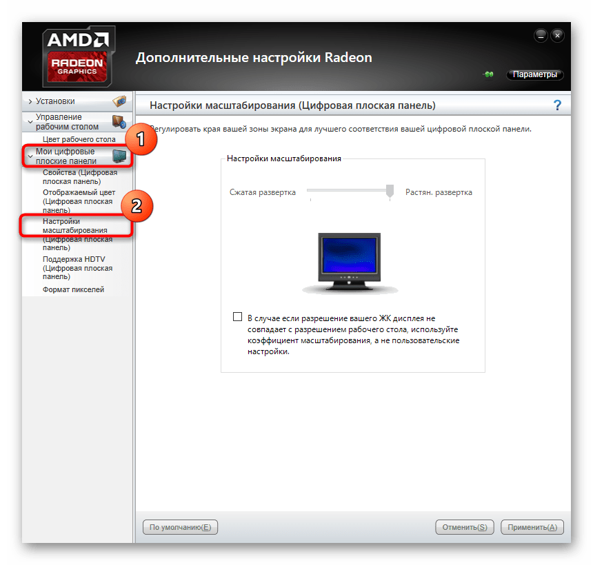 К сожалению, в панели управления AMD находится меньше настроек, однако там тоже есть несколько пунктов, отвечающих за редактирование масштабирования. Проверить и изменить их можно так:
