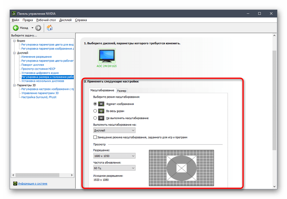 У драйверов видеокарт от компаний AMD и NVIDIA имеются приложения с GUI. Через них осуществляется более детализированное управление графикой. Там присутствуют отдельные меню, позволяющие настроить масштабирование и автоматическое изменение размеров, поэтому мы рекомендуем проверить этот параметр.