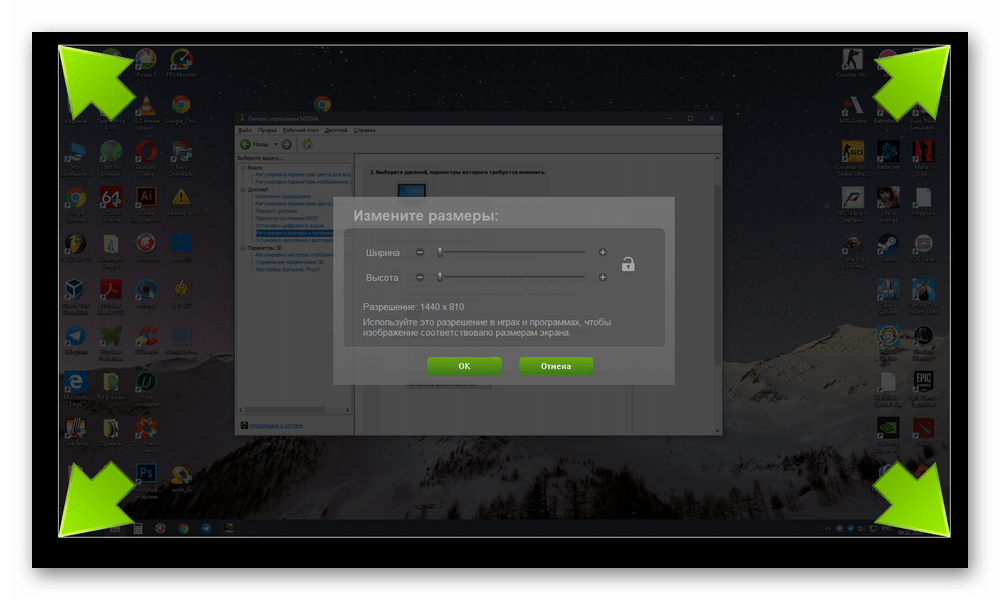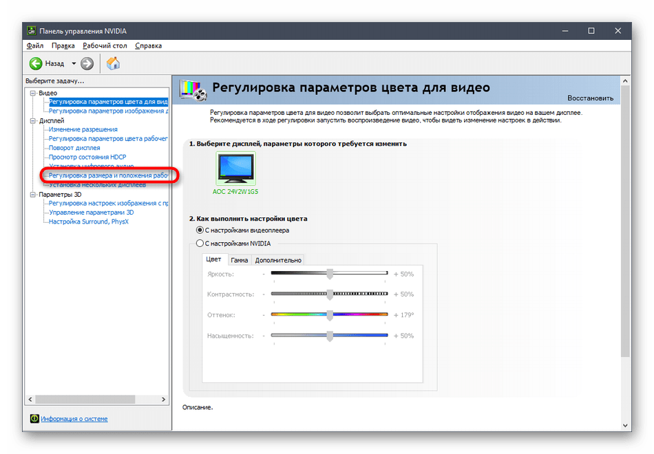 Здесь переместитесь в раздел «Регулировка размера и положения рабочего стола».