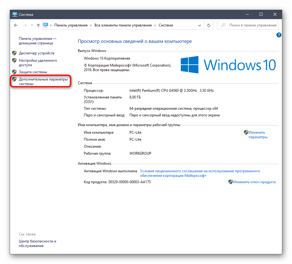 Воспользуйтесь левой панелью, чтобы переместиться в «Дополнительные параметры системы».