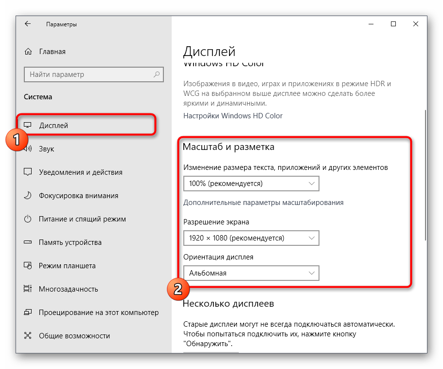 Подробнее:Изменение разрешения экрана в Windows 10Решение проблемы с отсутствием нужного разрешения экрана в Windows 10