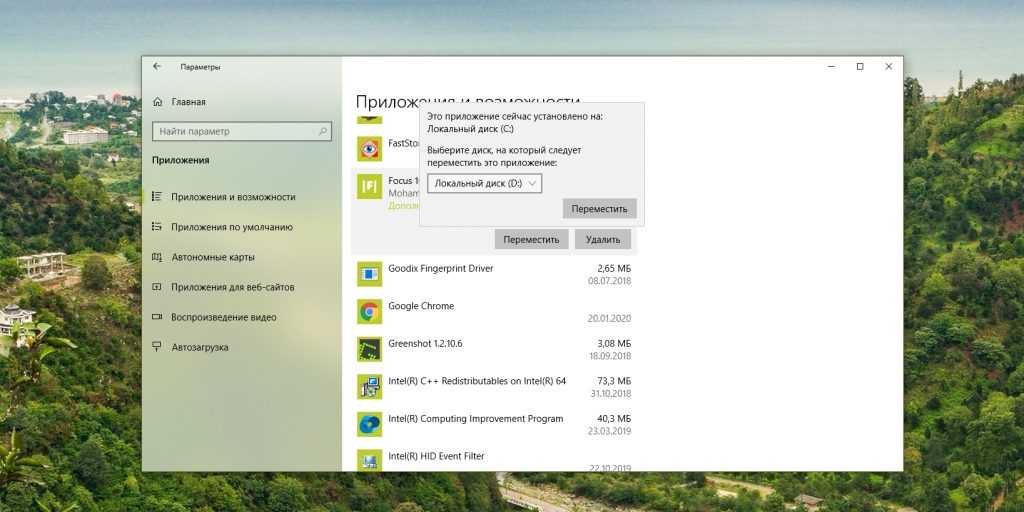 Те программы же, что вы скачивали раньше, по‑прежнему будут находиться на диске C. Но их можно перенести вручную. Для этого откройте «Параметры» → «Приложения», выберите нужное и щёлкните «Переместить».