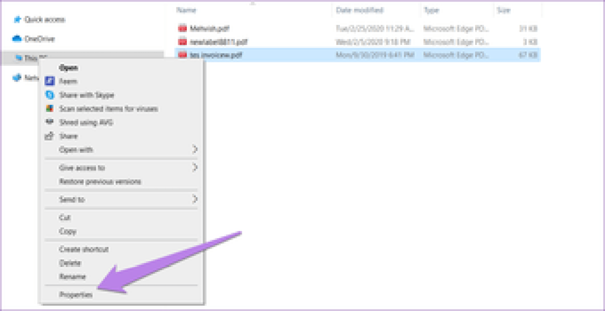 Шаг 1: Перейдите к файлу PDF в проводнике. Щелкните его правой кнопкой мыши и выберите в меню «Свойства».