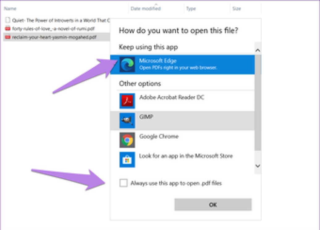 Если этот флажок установлен, установите флажок Всегда использовать это приложение, чтобы открывать файлы X в нижней части окна. Это навсегда изменит ассоциацию типов файлов. Затем нажмите ОК.