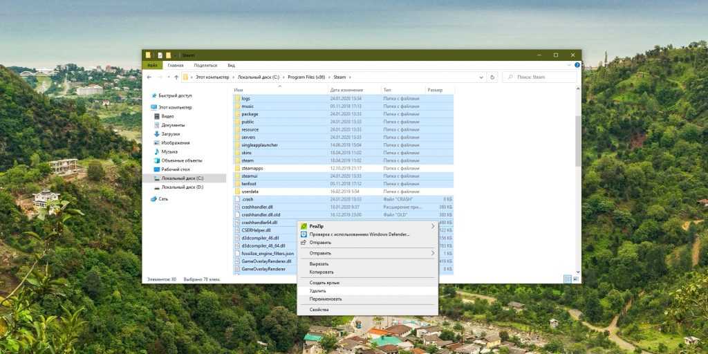 При необходимости можно перенести уже имеющиеся игры Steam на новый диск. Для этого закройте клиент и выйдите из него через меню в трее. Затем откройте папку с файлами Steam, по умолчанию C:Program FilesSteam. Удалите оттуда всё, кроме папок steamapps, userdata и файла Steam.exe.