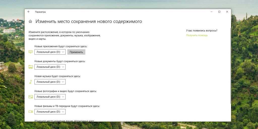 В появившемся окне в разделе «Новые приложения будут сохраняться здесь» выберите нужный диск и нажмите «Применить». Теперь все ваши программы из Microsoft Store будут устанавливаться в новое место.