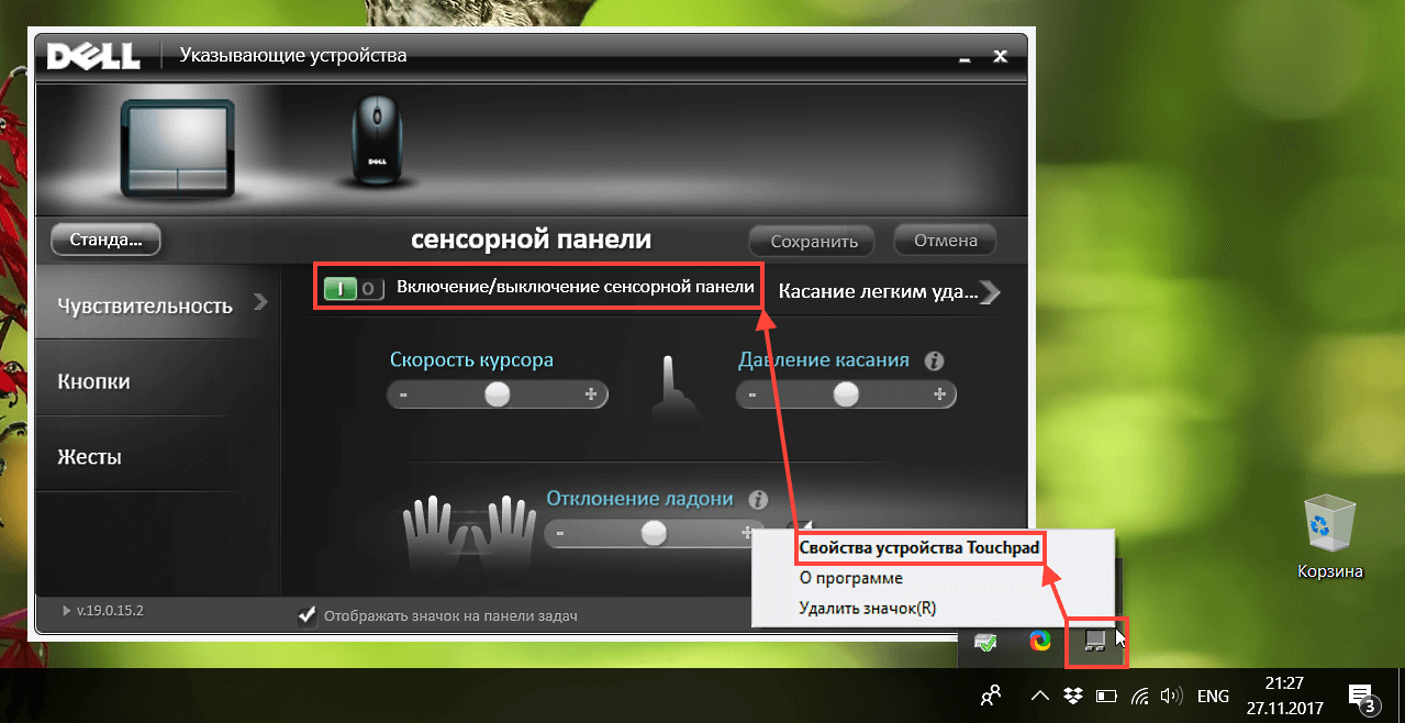 Если тачпад нужно будет заново включить, все действия выполняются в обратном порядке.