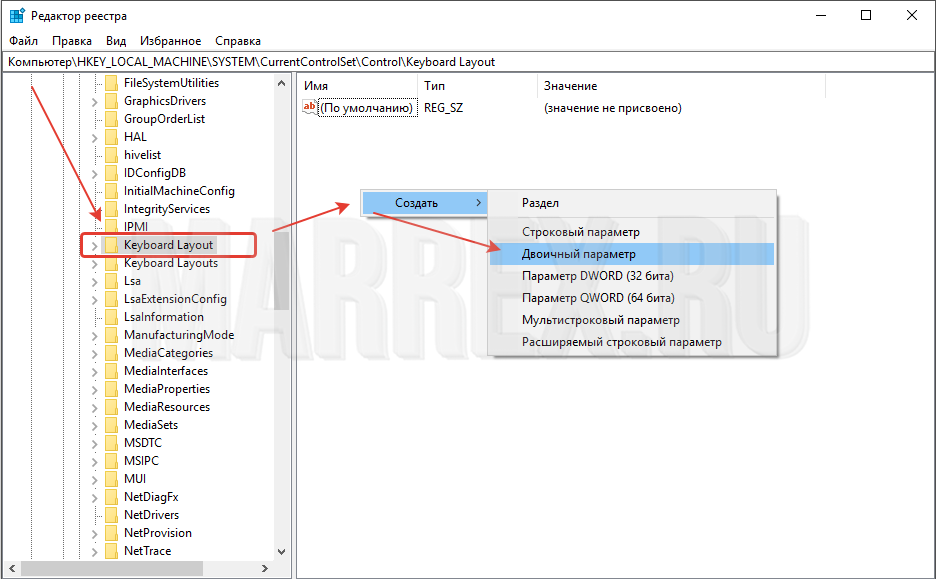 Компьютер\HKEY_LOCAL_MACHINE\SYSTEM\CurrentControlSet\Control\Keyboard Layout