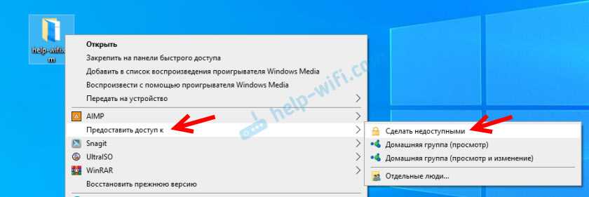 Просто нажимаем на папку или файл правой кнопкой мыши, выбираем «Предоставить доступ к» и нажимаем на «Сделать недоступными».