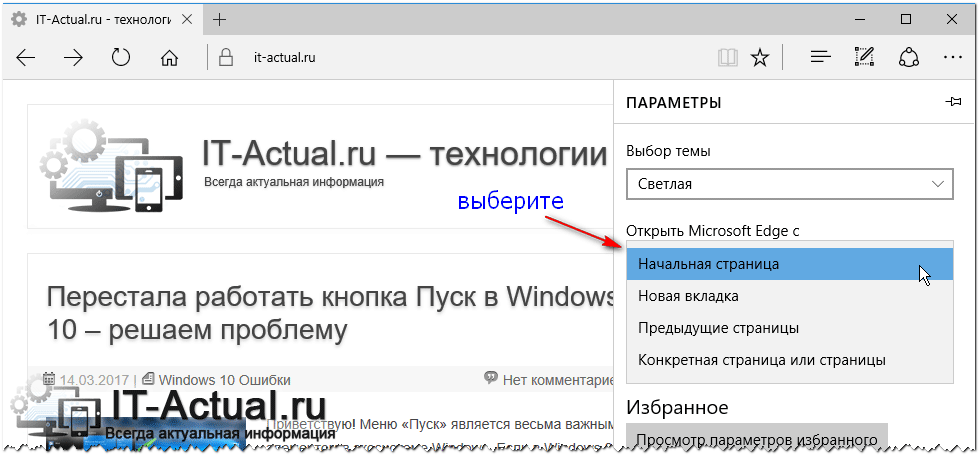 Как настроить открытие определённой страницы (стартовую страницу) при запуске браузера Microsoft Edge