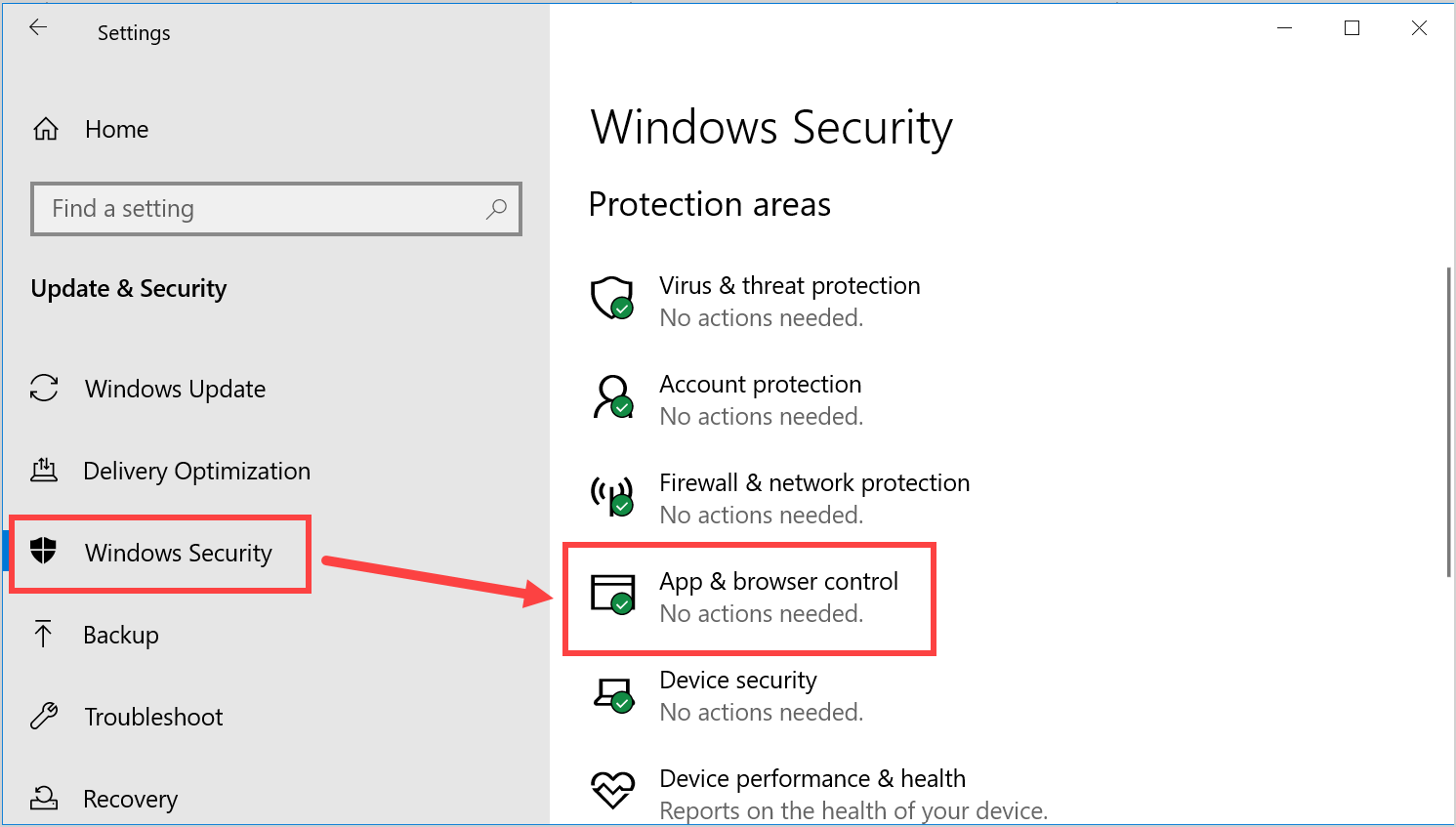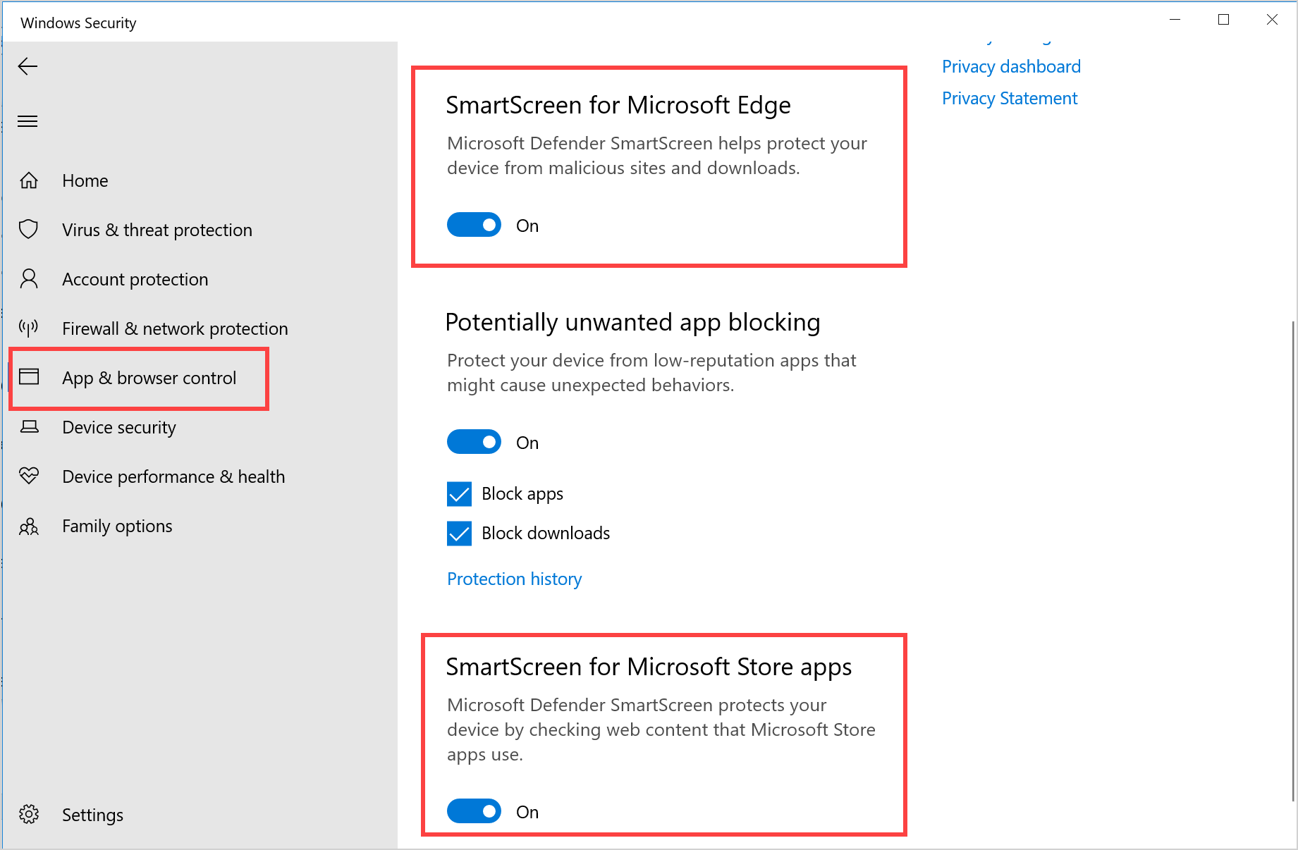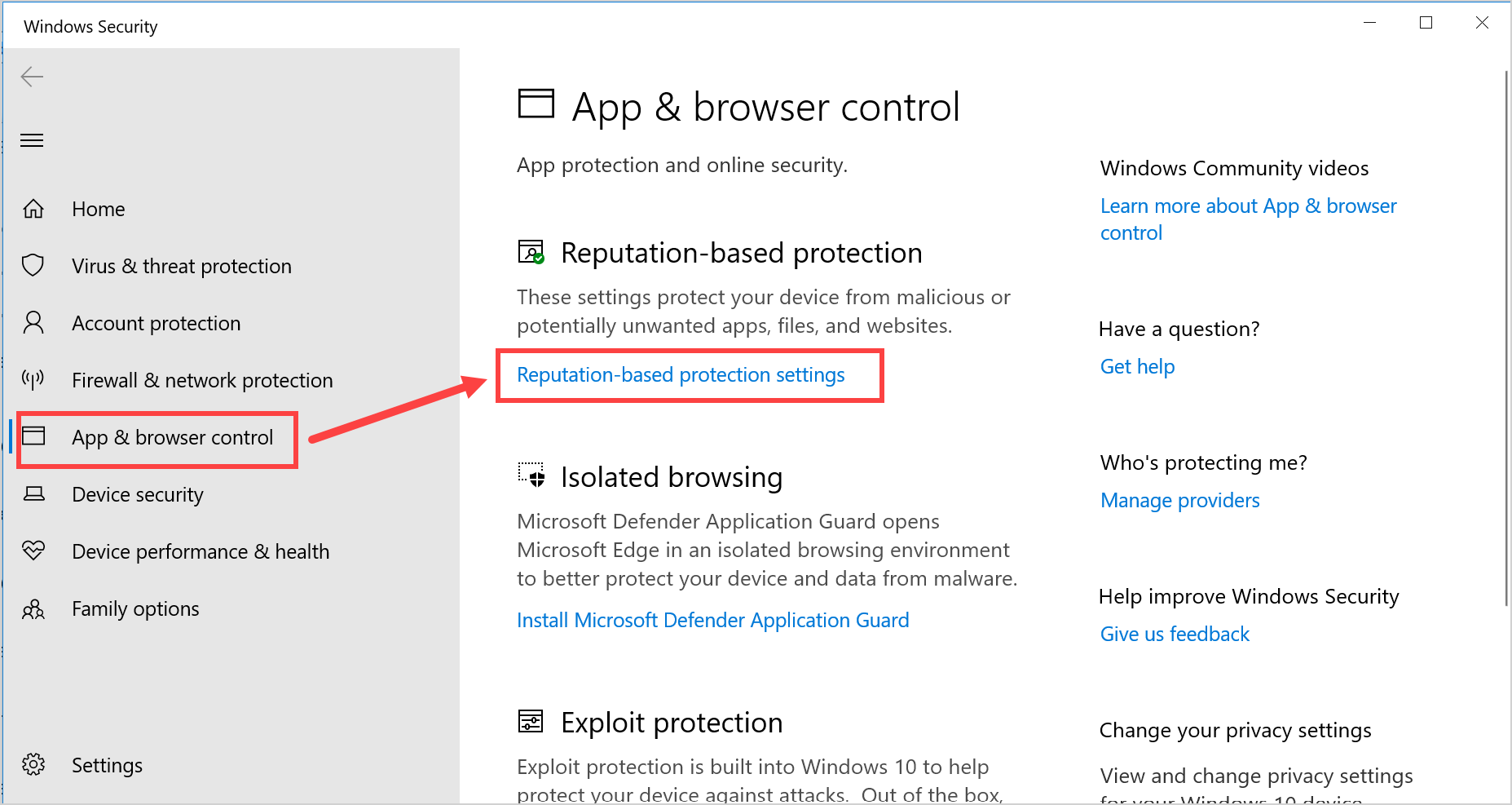 Обратите внимание, что защита на основе репутации — это новая функция Windows, которую вы не найдете в старых версиях. В этом случае вы можете найти параметры SmartScreen в разделе «Управление приложением и браузером»