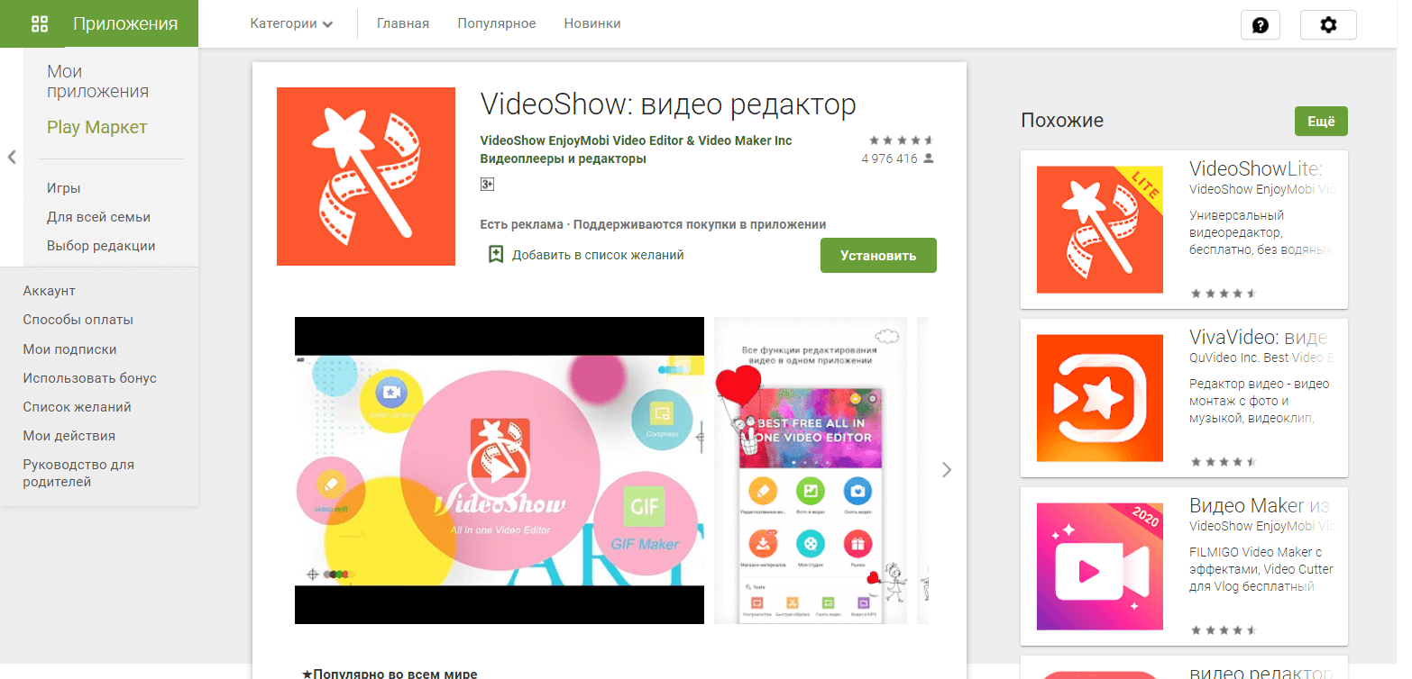 Приложение VideoShow разработано для съёмки и загрузки фотографий, видео, музыки и текста в социальные сети.