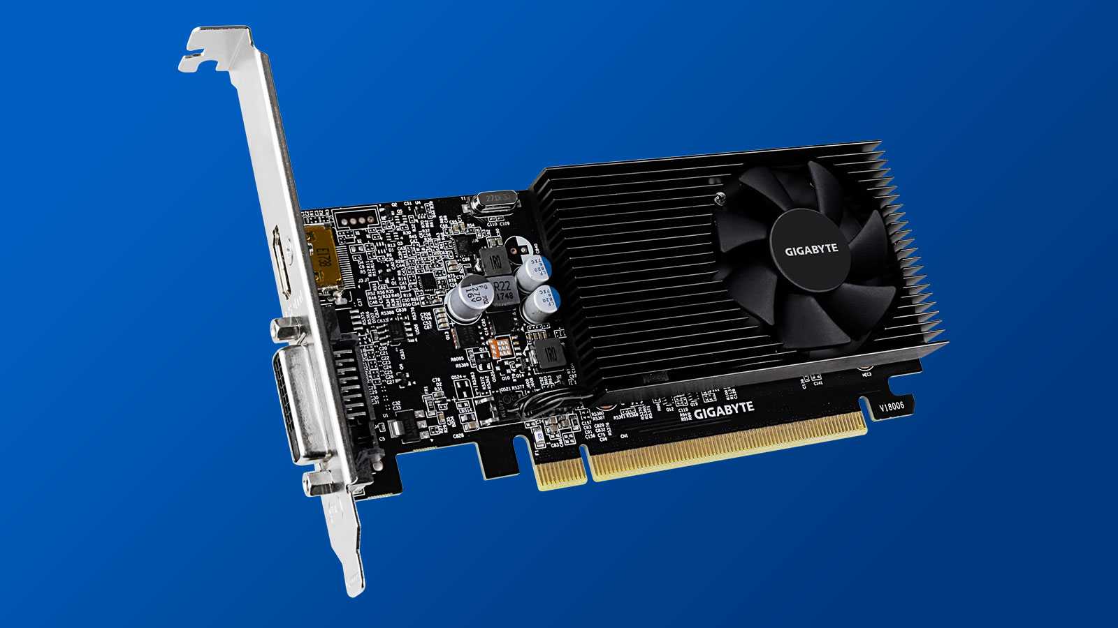 Работягам в офисе или просто любителям погонять танки или корабли на минималках, данный дешевый вариант подойдет лучше всего. Заплатив порядка 6000 рублей, вы получите 2 Гб видеопамяти с урезанной до 64 бит шиной и пониженной частотой в 6008 МГц. Из-за скромных характеристик энергопотребление также невысоко и составляет всего 30 Вт. Для такой малютки хватит блока питания на 300 Вт. Стоит отметить, что это низкопрофильная карта, а значит, она легко влезет в любой корпус, главное – не игровой, ибо с производительностью все плохо.