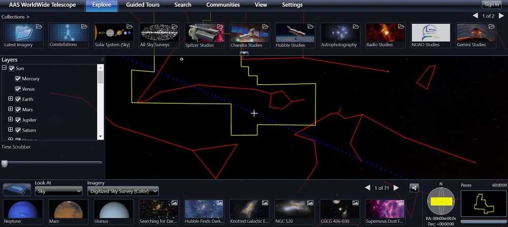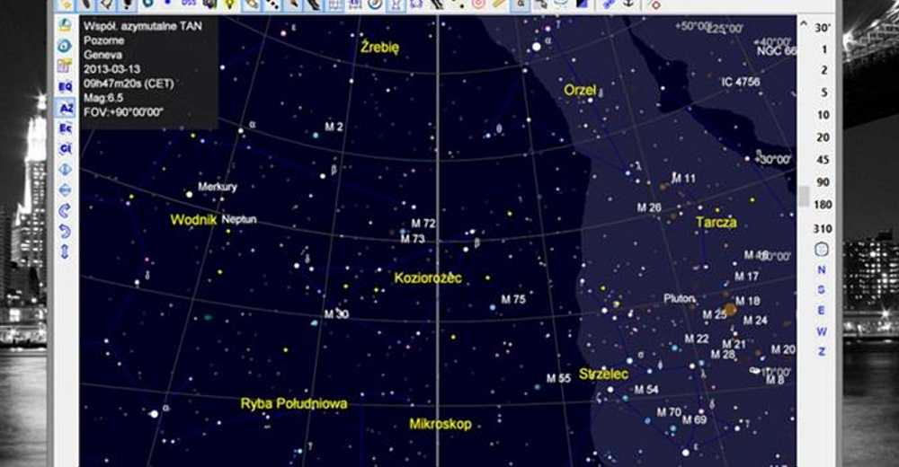Если не хотите устанавливать программу, то есть возможность составлять карту ночного неба прямо в своем браузере. На сайте производителя доступны дополнительные каталоги, которые увеличивают возможности программы. Большим преимуществом Sky Chart является возможность управления телескопом, подключенным к компьютеру.