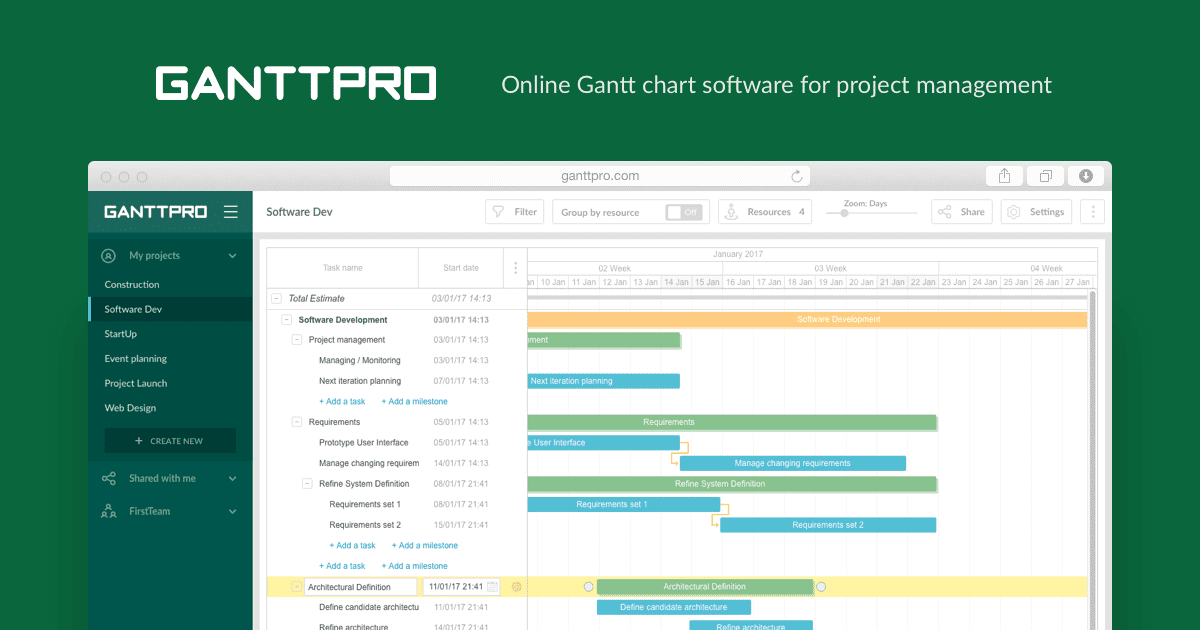 Программа позволяет строить графики, отслеживать ход выполнения работ, контролировать расходы финансов и времени. С помощью GanttPRO можно общаться со своей командой, получать уведомления в режиме реального времени. Готовые шаблоны помогут быстрее разобраться в интерфейсе.