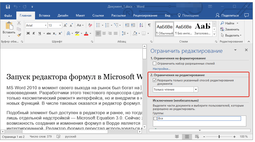 Word не дает редактировать текст или почему нельзя изменить документ: 1 комментарий