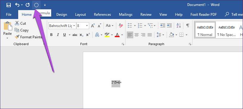 При нажатии кнопки ОК на панель инструментов добавляется команда «Рассчитать». Чтобы проверить это, просто напишите простое уравнение, выберите его (не выбирая знак равно знак) и нажмите значок Рассчитать рядом с панелью быстрого доступа.