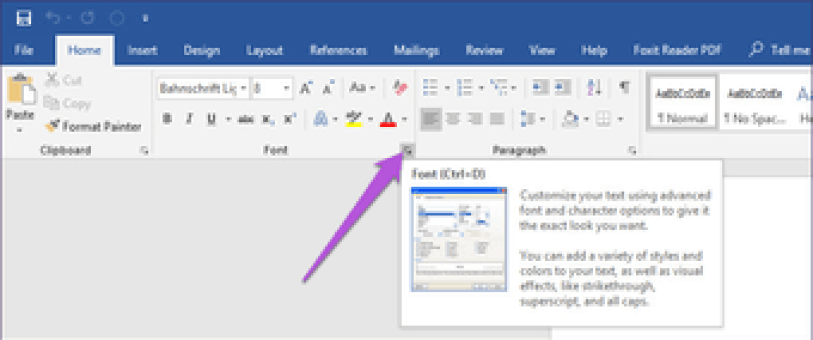 Не нравится шрифт по умолчанию и его размер в Word? Вы можете это изменить. Чтобы выполнить эту настройку, перейдите на вкладку «Главная» и щелкните значок стрелки в правом нижнем углу, чтобы развернуть раздел «Шрифт». Кроме того, вы можете использовать сочетание клавиш Ctrl + D.