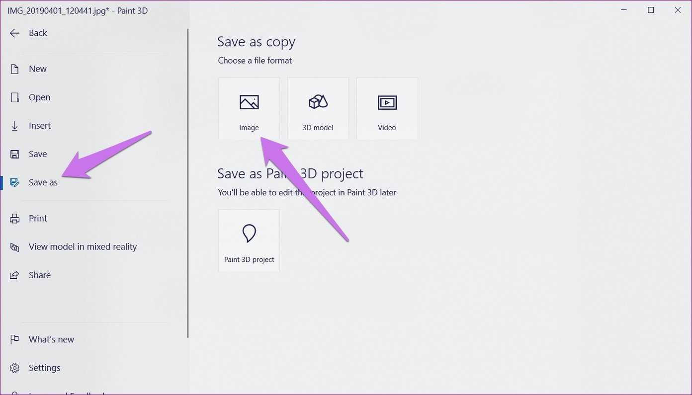 - Наконец, закройте приложение Paint 3D . При появлении запроса нажмите кнопку « Не сохранять ». Таким образом, вы не будете изменять исходное изображение.