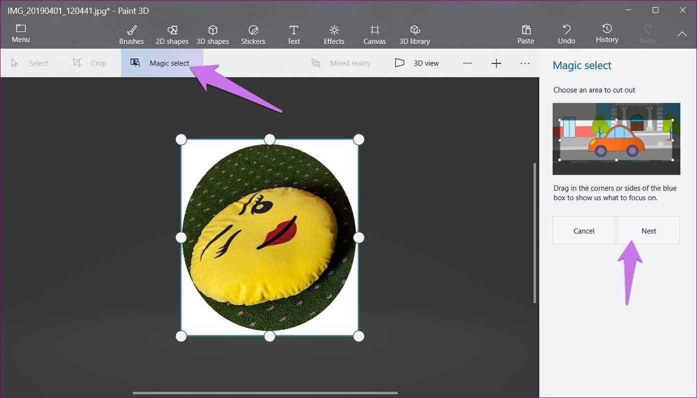Чтобы сделать фон прозрачным, мы будем использовать инструмент Magic Paint Paint 3D.