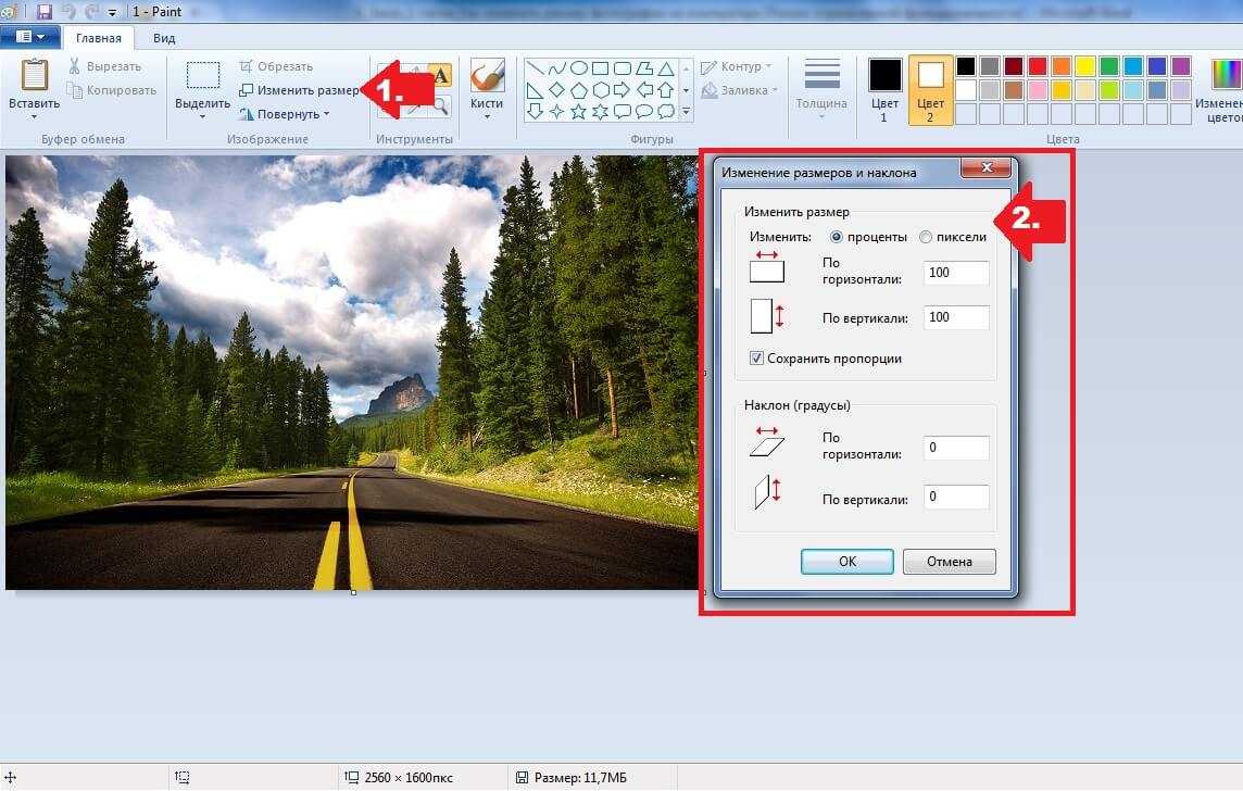 Добавьте в этот графический редактор необходимую для работы фотографию, которая имеет слишком маленький размер. Далее укажите, в каком процентном соотношении Paint должен увеличить размер данного изображения. Этот пункт меню открывается щелчком по средней клавише в верхнем меню данного графического редактора. Также данное окно можно открыть намного легче, простым сочетанием ctrl + w. В новом окне открывшегося меню «Изменение размеров и наклона» содержит все необходимые параметры для изменения размера изображения. Изначально все размеры изображения тут заданы в процентах, а новое задание параметров размера картинки производится пропорционально. Хотя вы можете поменять настройки и на пиксели. То есть само изображение сохранит все свои исходные пропорции, но изменит сам размер. После того, как вы зададите необходимые параметры размера изображения, необходимо нажать на кнопку OK и графический редактор изменит размеры редактируемого изображения необходимым вам образом.