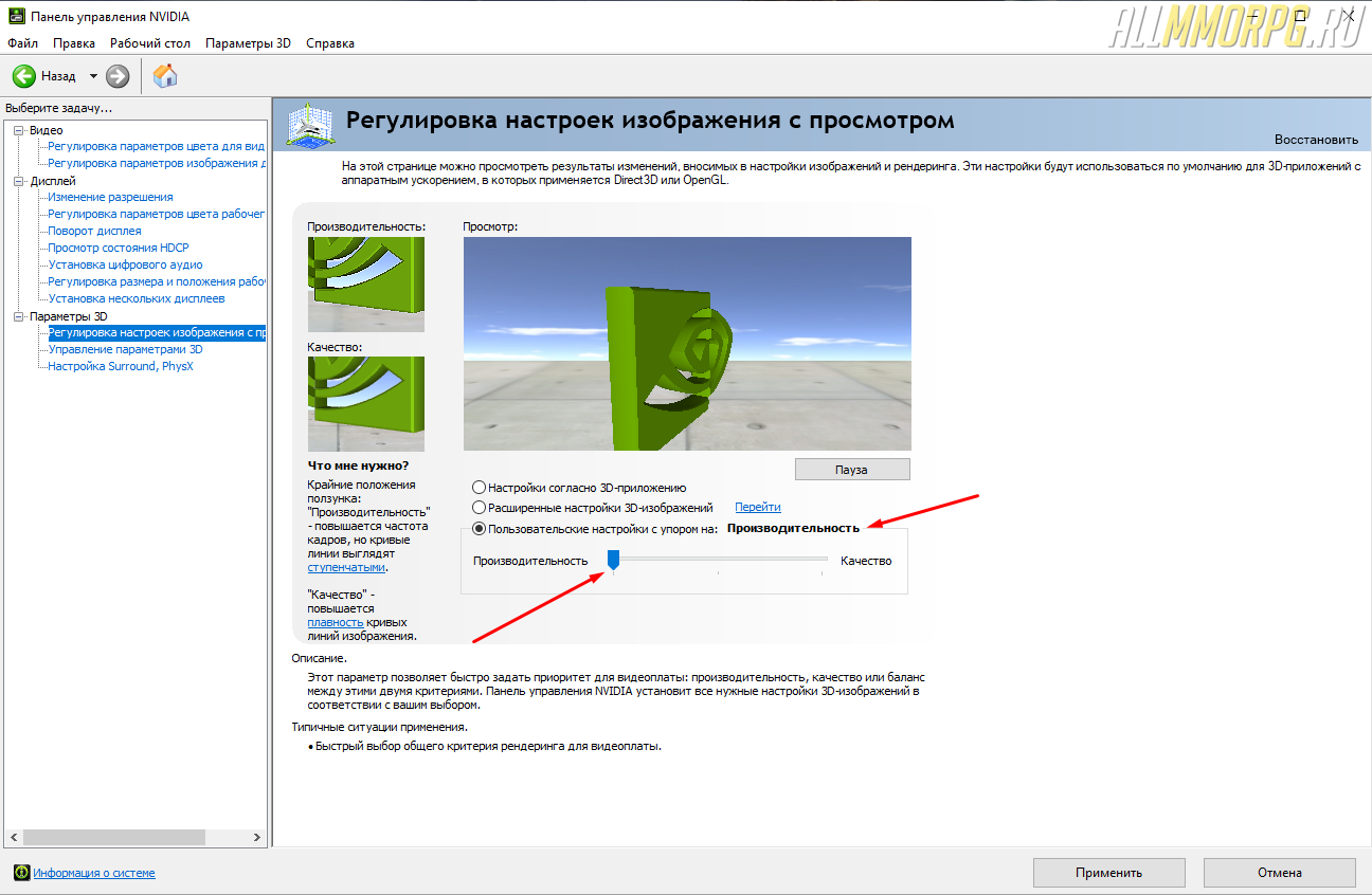 Эта настройка увеличит ФПС в игре, но ухудшит изображение. Если после изменения параметров в панели управления NVIDIA у вас возникли проблемы с Genshin Impact, откройте программу для настройки видеокарты и во вкладке «Параметры 3D» поставьте отметку напротив пункта «Настройки согласно 3D-приложению».