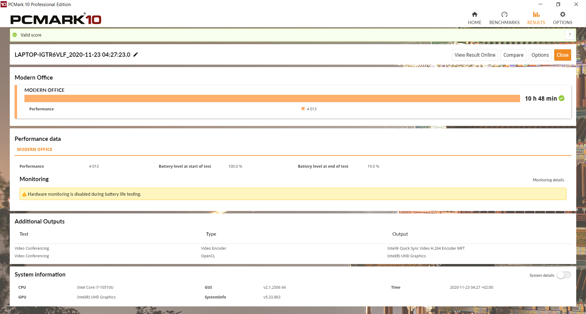 В тесте просмотра веб-страниц T480s проработал чуть меньше 9 часов, а при просмотре зацикленного видеозаряда батареи хватило почти на 11 часов.