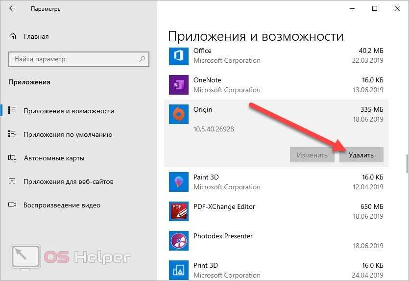 - В списке программ найдите Origin, выделите данную позицию и кликните на «Удалить».