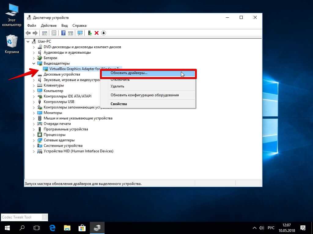 - Если все нормально, то в первую очередь рекомендуется обновить драйверы видеокарты. Для этого нужно правой кнопкой мыши щелкнуть по ней, выбрать действие «Обновить».