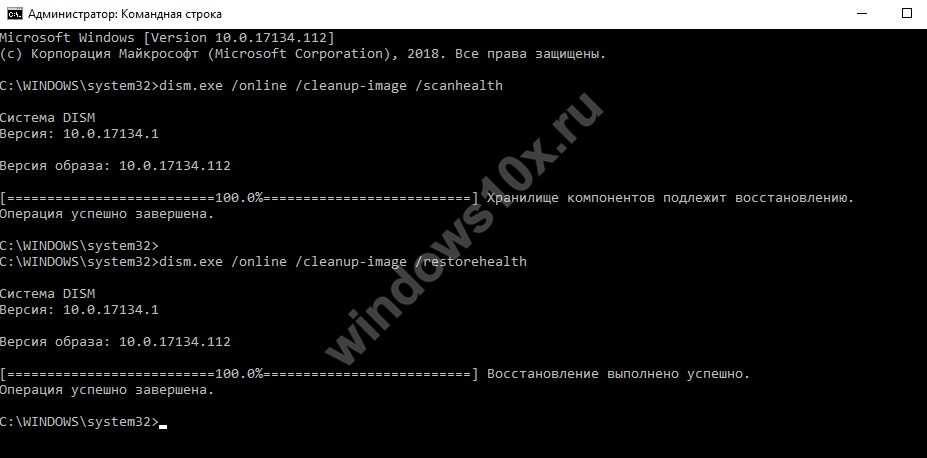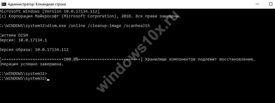 Если появится сообщение, что хранилище повреждено, но подлежит восстановлению, то запускайте dism.exe /online /cleanup-image /restorehealth .