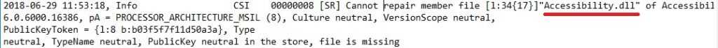 4. Рекомендуется вручную заменить поврежденные файлы, взяв нормальные копии с рабочего компьютера. Чтобы найти те, которые сама система не смогла восстановить, откройте лог-файл по указанному пути, нажмите CTRL+F и введите «cannot repair» .