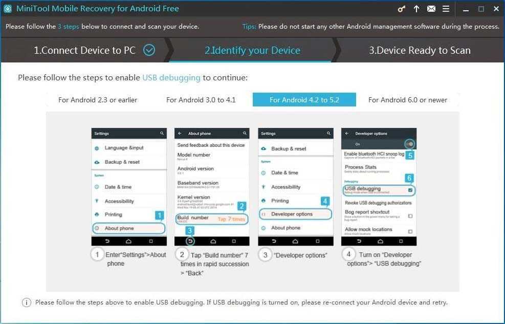 - Когда вы используете программное обеспечение MiniTool для восстановления файлов, вам необходимо закрыть любое другое программное обеспечение для управления Android, чтобы оно работало нормально.