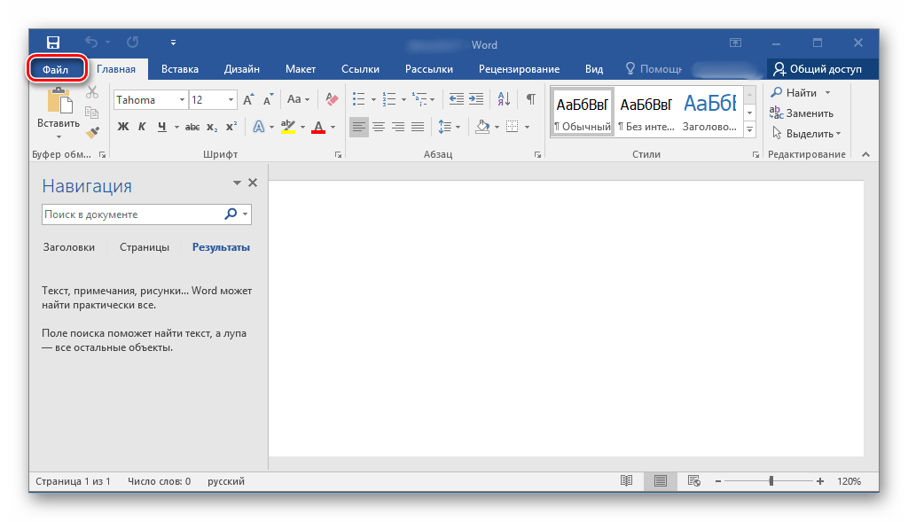 - Выберите вкладку «Файл».