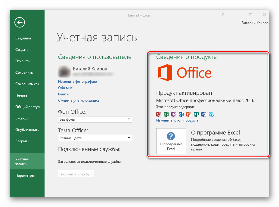 - Затем выберите « Аккаунт» на вкладке «Файл».