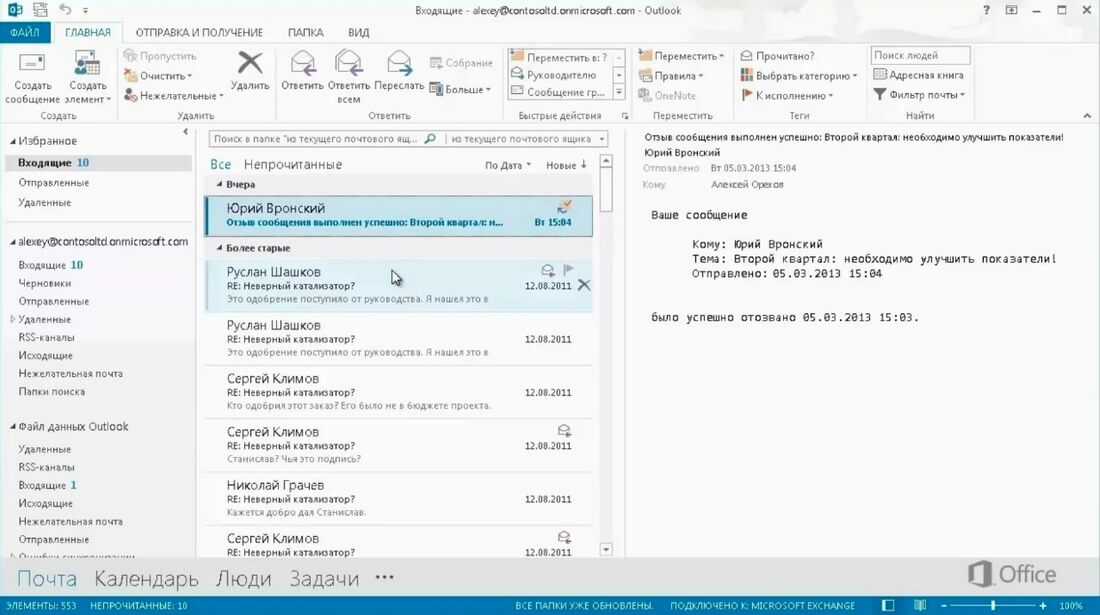 Отзываем сообщение в Outlook 2010, 2013
