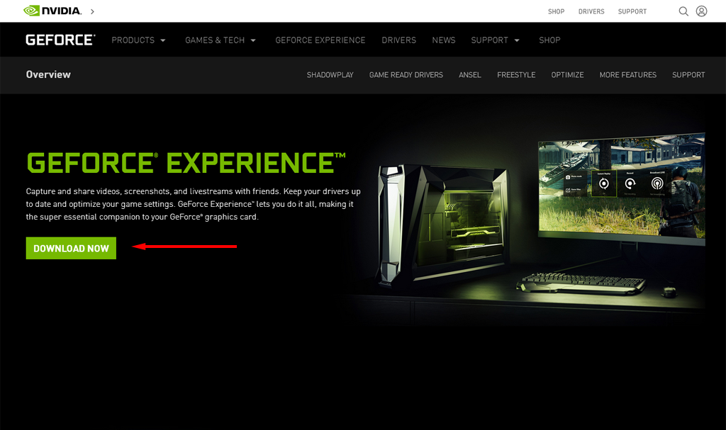 - Направляйтесь к Страница загрузки GeForce Experience и выберите ЗАГРУЗИТЬ, чтобы загрузить приложение.