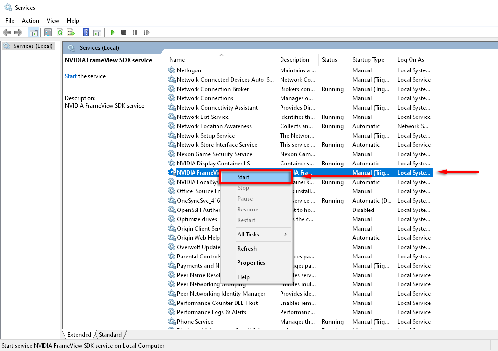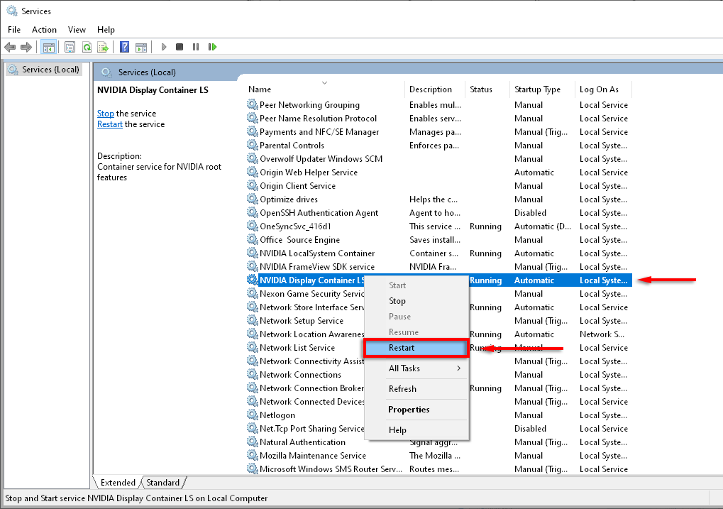 Если все службы NVIDIA работают правильно, вы можете попытаться принудительно перезапустить их, устраняя любые сбои в программном обеспечении и устраняя ошибку.