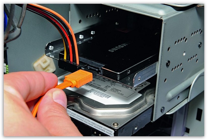 Отсоединяем кабели данных и питания от проблемного жесткого диска