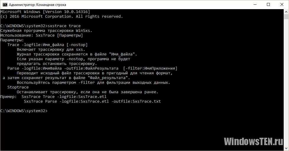 Чтобы диагностировать причину возникновения ошибки с помощью sxstrace.exe, нужно сделать следующее: