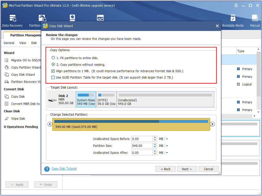 Step 3. Confirm the copy options or make some changes depending on your preference. Click «Next» to go on.