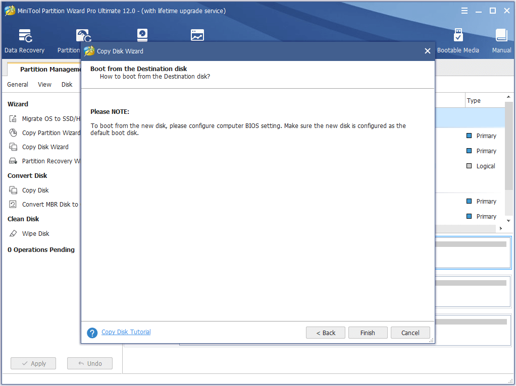 Step 4. Read the «how to boot from the new disk» information and click «Finish».