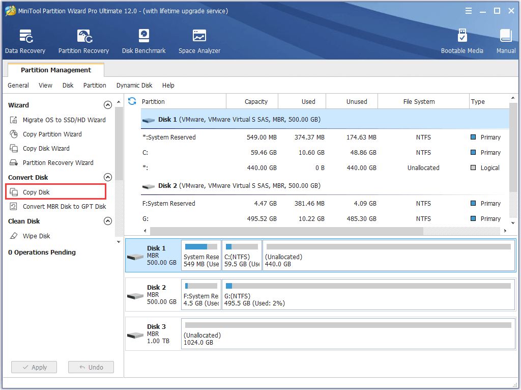 Step 1. Select system disk as the source disk and choose «Copy Disk» feature from the action panel.