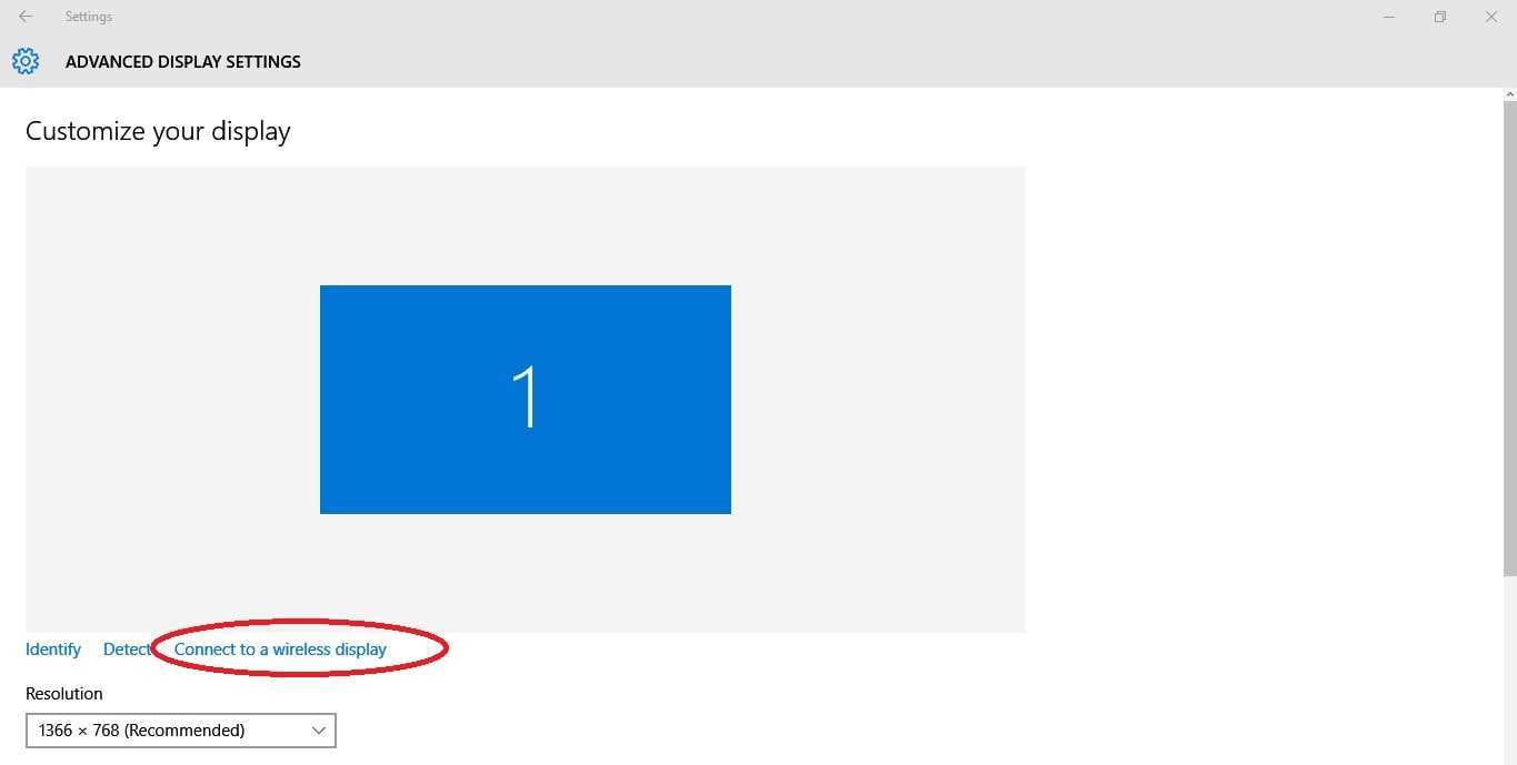 - It will display options to configure with a second monitor, and in the end, there is a link that says “Connect Wireless Display.”
