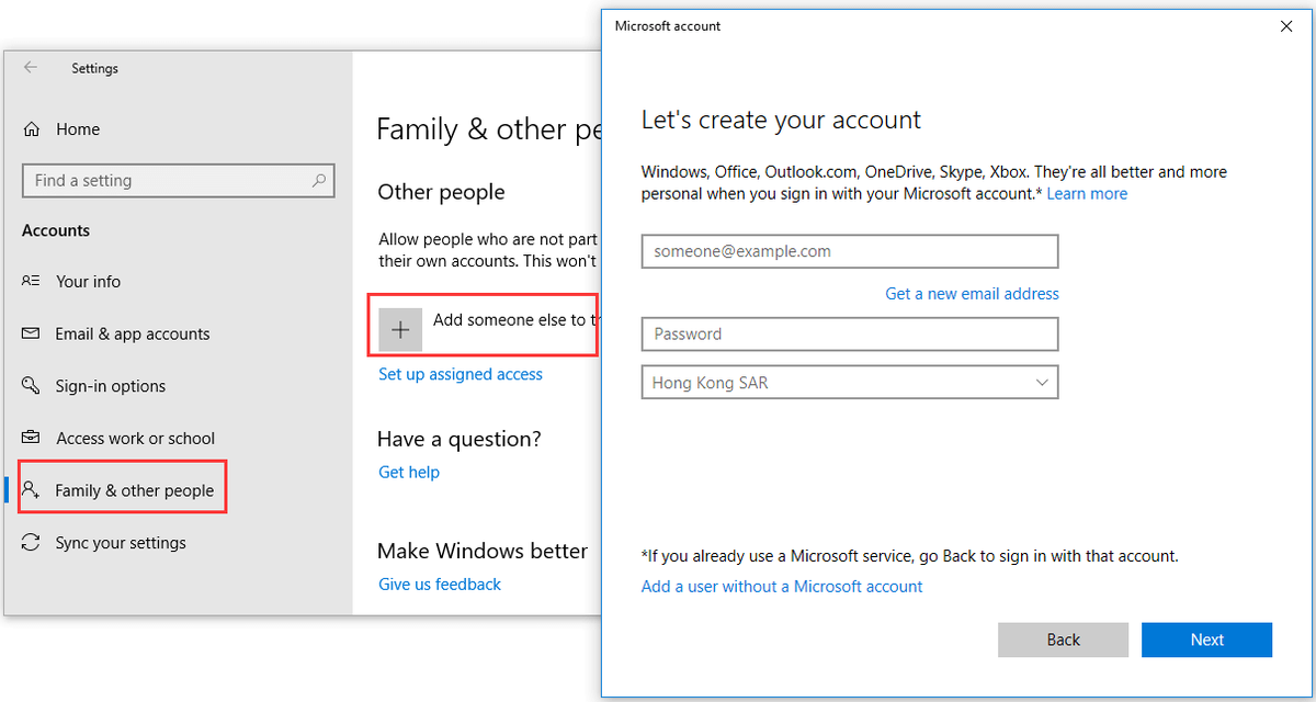Шаг 2. Далее выберите Семья и другие люди на левой панели и щелкните Добавить кого-нибудь на этот компьютер .