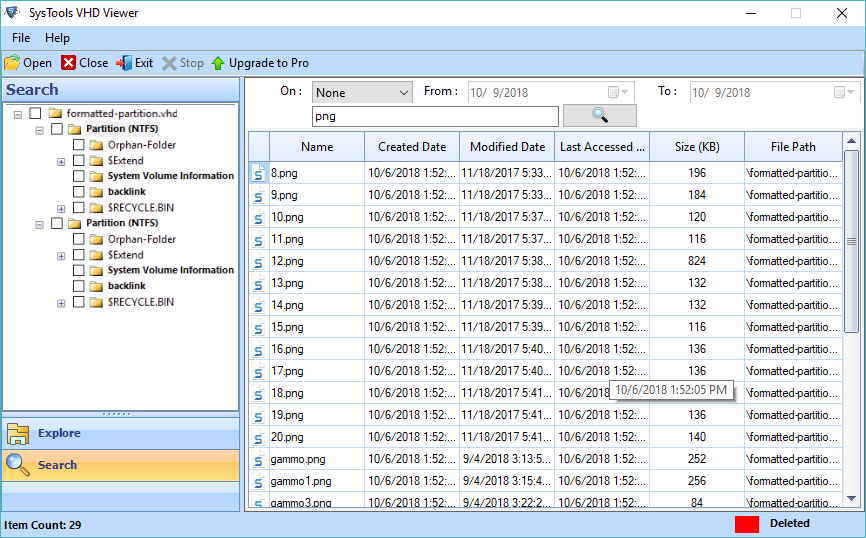Чтобы преодолеть все недостатки, пользователи могут использовать надежный инструмент. Следовательно Просмотрщик VHD tool был рекомендован в качестве универсального решения. Это помогает легко и легко просматривать файлы VHD. Он может открывать и просматривать содержимое всех разделов в файле образа диска. Утилита поддерживает файловые системы FAT32 и NTFS с фиксированной и динамической памятью. Инструмент может просматривать все элементы данных в файле VHD при удалении или форматировании разделов файла VHD. Вы также можете просматривать элементы в одном или нескольких разделах файла VHD.