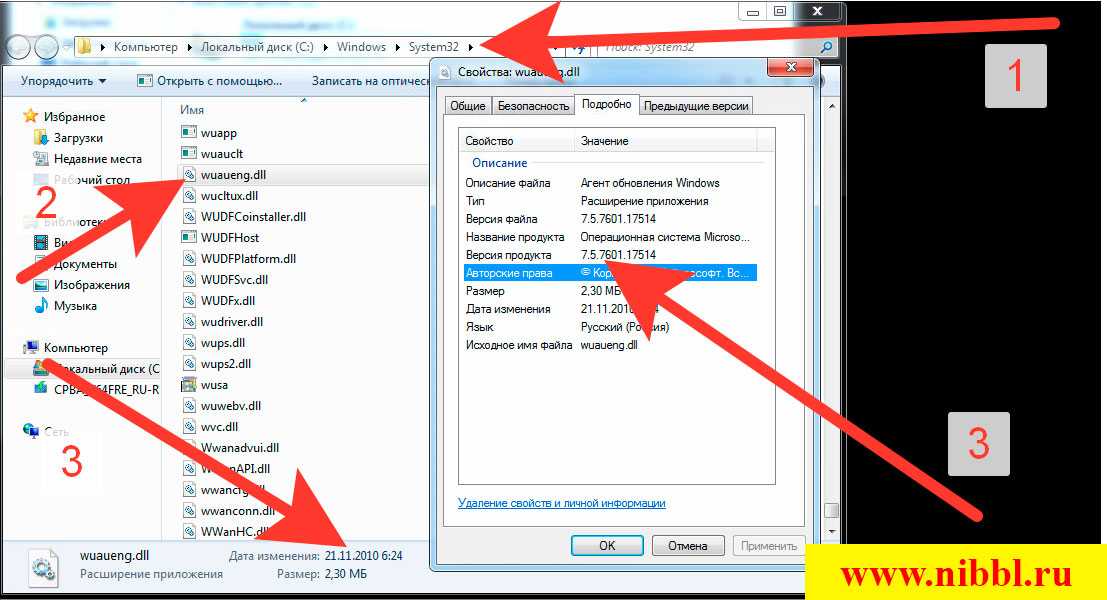 - Щелкните правой кнопкой мыши на файле Wuaueng.dll, а затем выберите Свойства.
