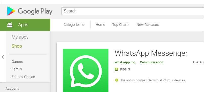 - Найдите WhatsApp -> щелкните по нему, чтобы открыть страницу.
