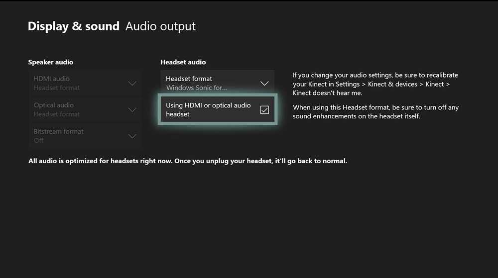 Если всё в порядке, то следует зайти в настройки, в раздел видео и звука. Здесь выберите либо HDMI, либо оптическое соединение, в зависимости от вашей системы. Затем выберите аудиоформат. Если вы не можете определиться, просто ткните «несжатое стерео».